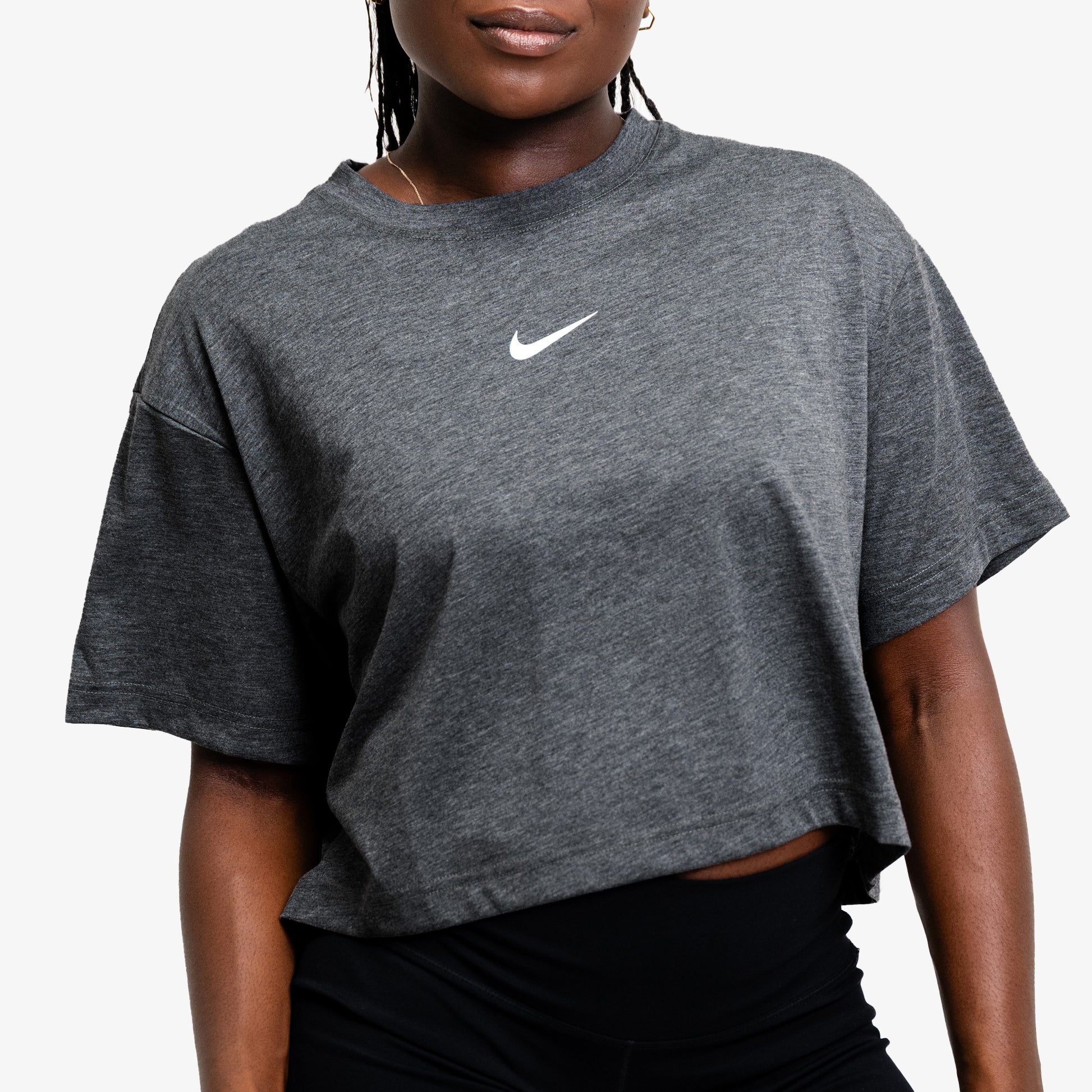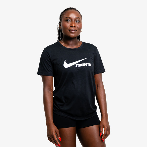 Move freely while repping Nike Strength. This cropped design and sweat-wicking, Dri-FIT technology offers easy comfort during workouts or at home. The Nike Strength & Conditioning Women's Cropped Tee combines a Swoosh on the left chest and a large Nike Strength & Conditioning logo on the back.